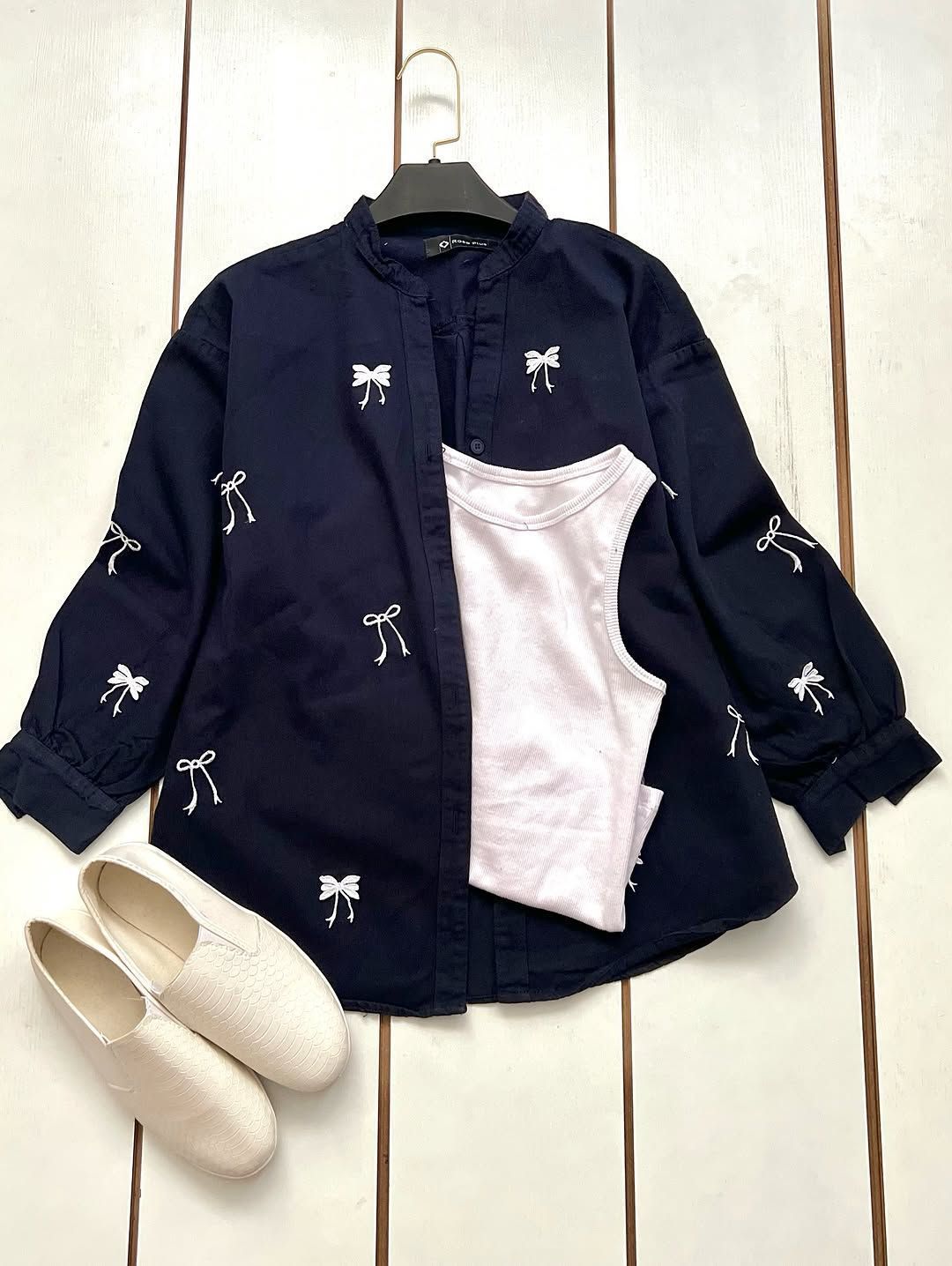 🌸🌸کالکشن بهاره🌸🌸 🌸شومیزلنین گلدوزی پاپیون 🌸جنس:لنین پنبه درجه۱ بدون آبرفت 🌸سایز:فری تا۴۶ 🌸رنگبندی:۷رنگ 🌸پک:۷ایی 🌸قد:جلو۷۰پشت۷۵سانت